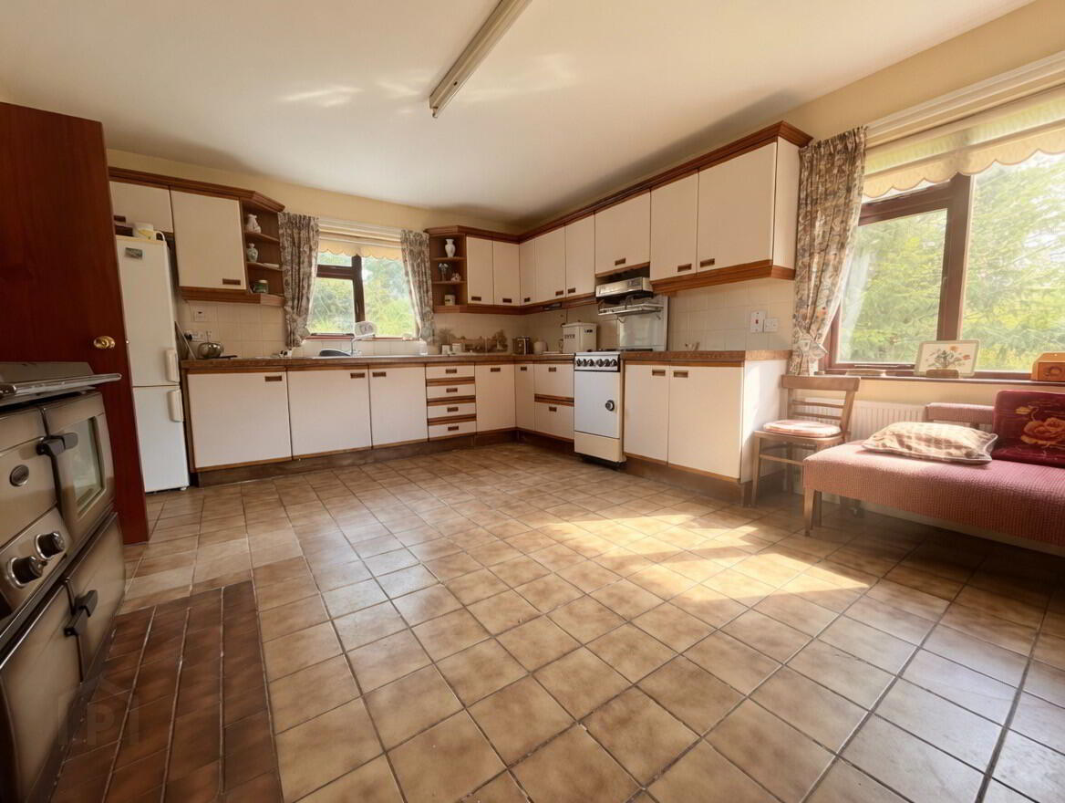 Kitchen/Dinette – 15’4” x 12’8” Quality 'Johnston' kitchen providing extensive range of filled high and low level units, tiled floor and part tiled walls. Cosy Stanley oil fired pressure jet cooker which provides central heating and cooking in addition to an electric cooker.