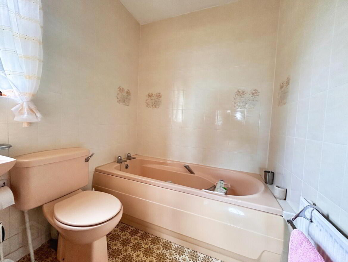 Bathroom – 7’6” x 5’8” Bath, wash hand basin and WC – Fully tilled walls