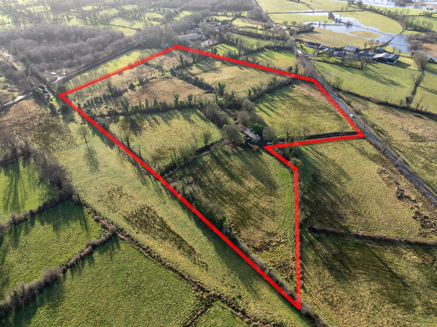 This exciting small holding presents a very rare opportunity to create a dream small holding just 0.25 miles south of Lisnaskea.  Comprising of a detached semi derelict 3 bedroom, 1 1/2 storey dwelling set on a commanding site all totalling c. 13.8 acres with excellent road frontage onto the Derrylin Road.  We understand the dwelling has an electric connection which may be currently de-energised.